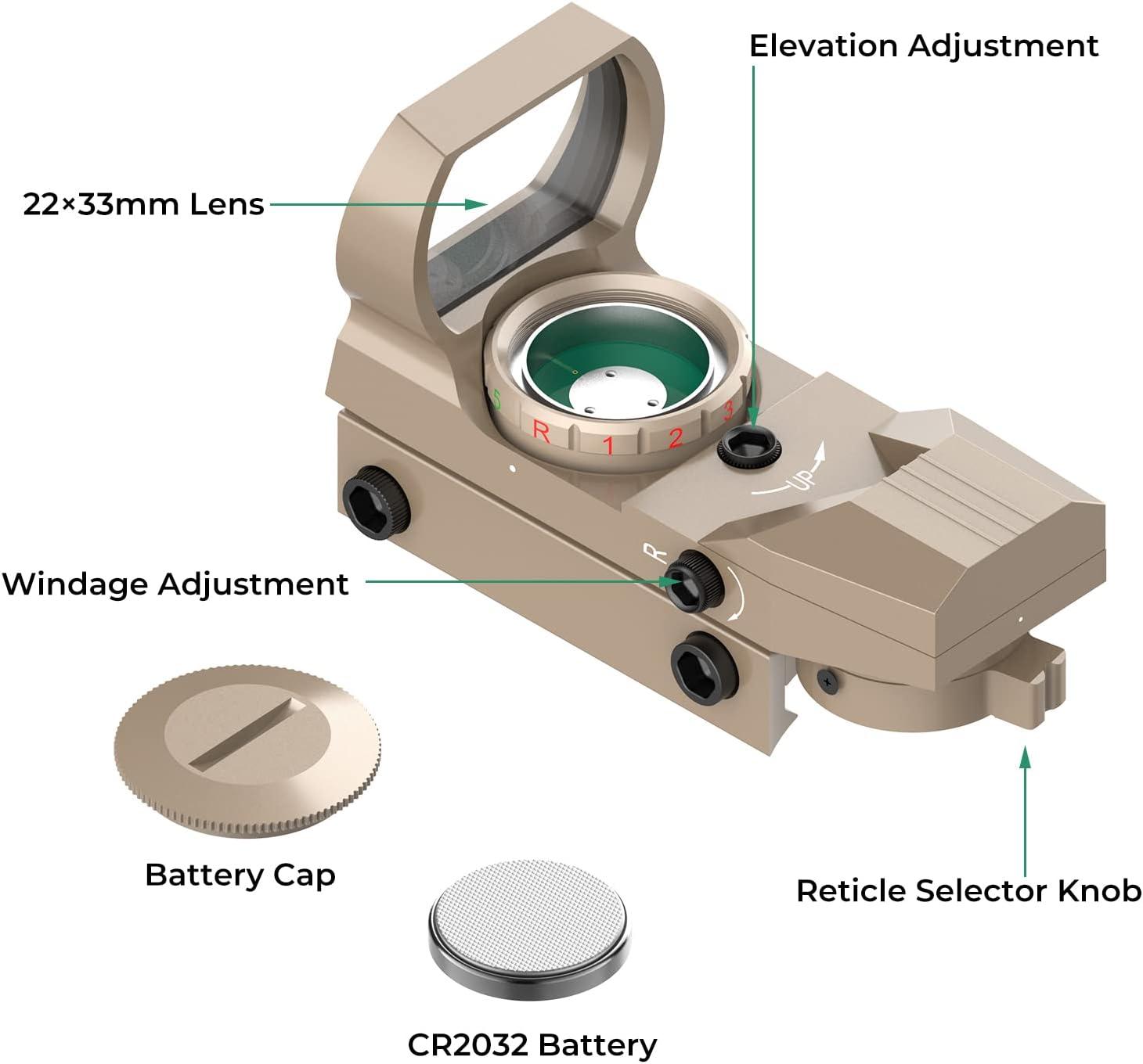 Reflex Sight, Ohuhu Red Green Dot Gun Sight Scope Reflex Sight Holographic Sight Airsoft Sight with 4 Adjustable Reticle Patterns 20mm Rail