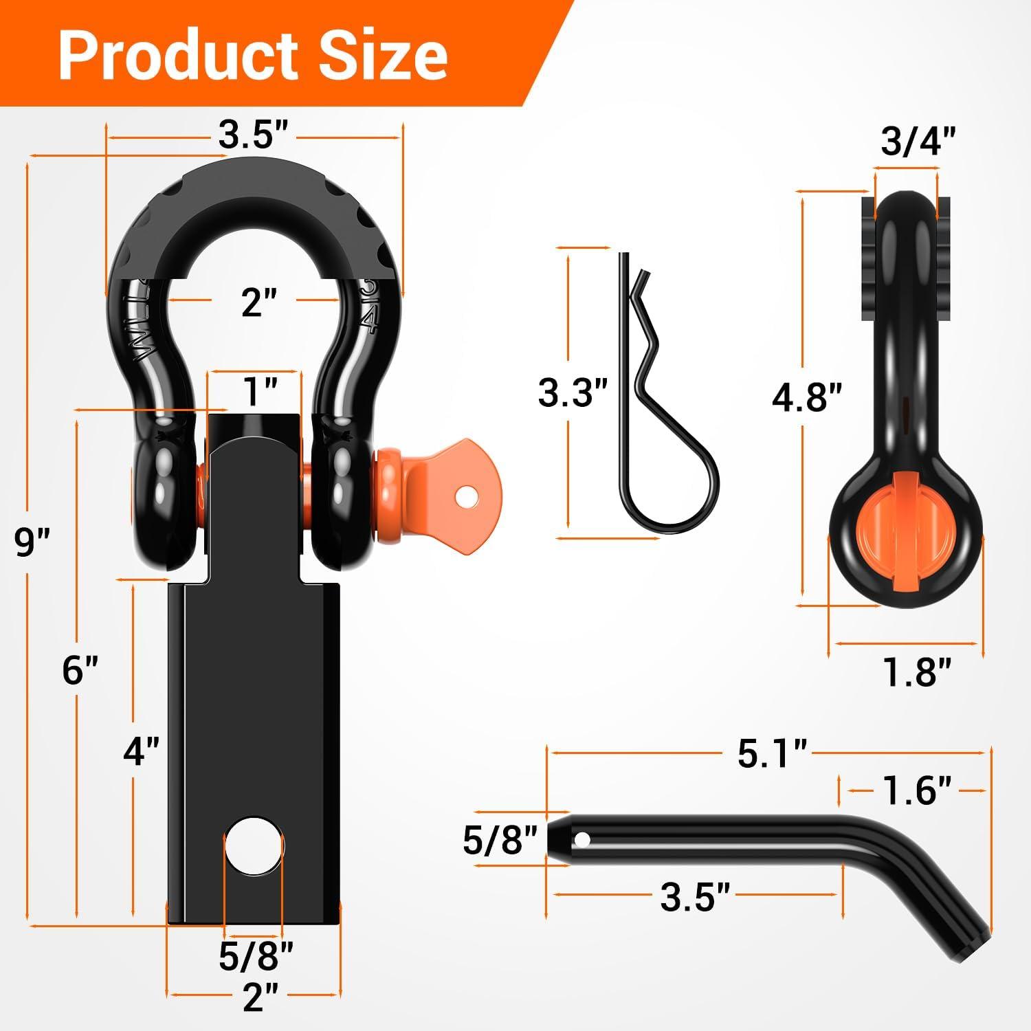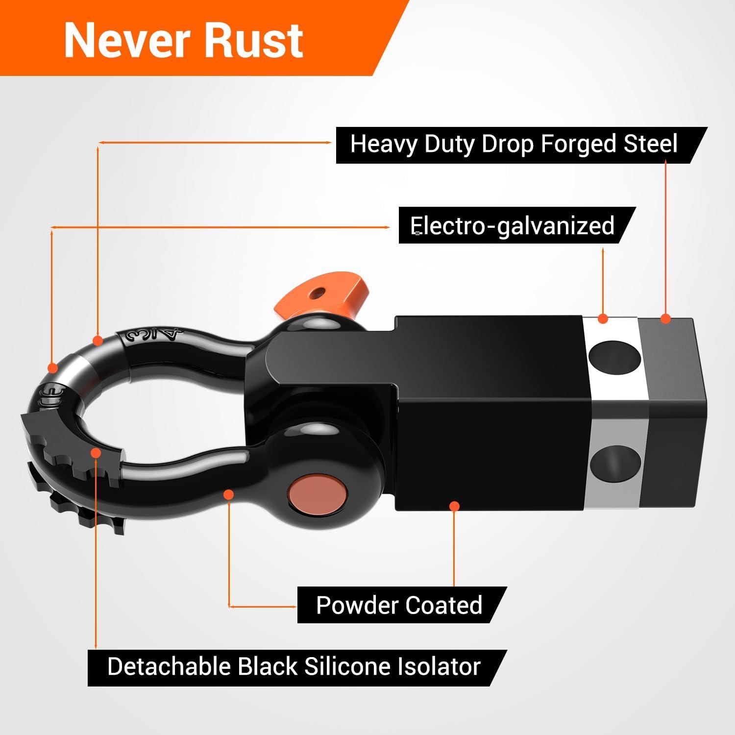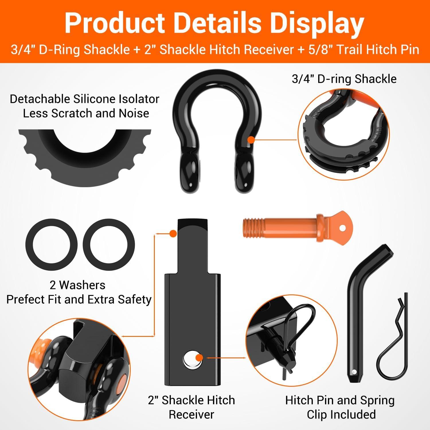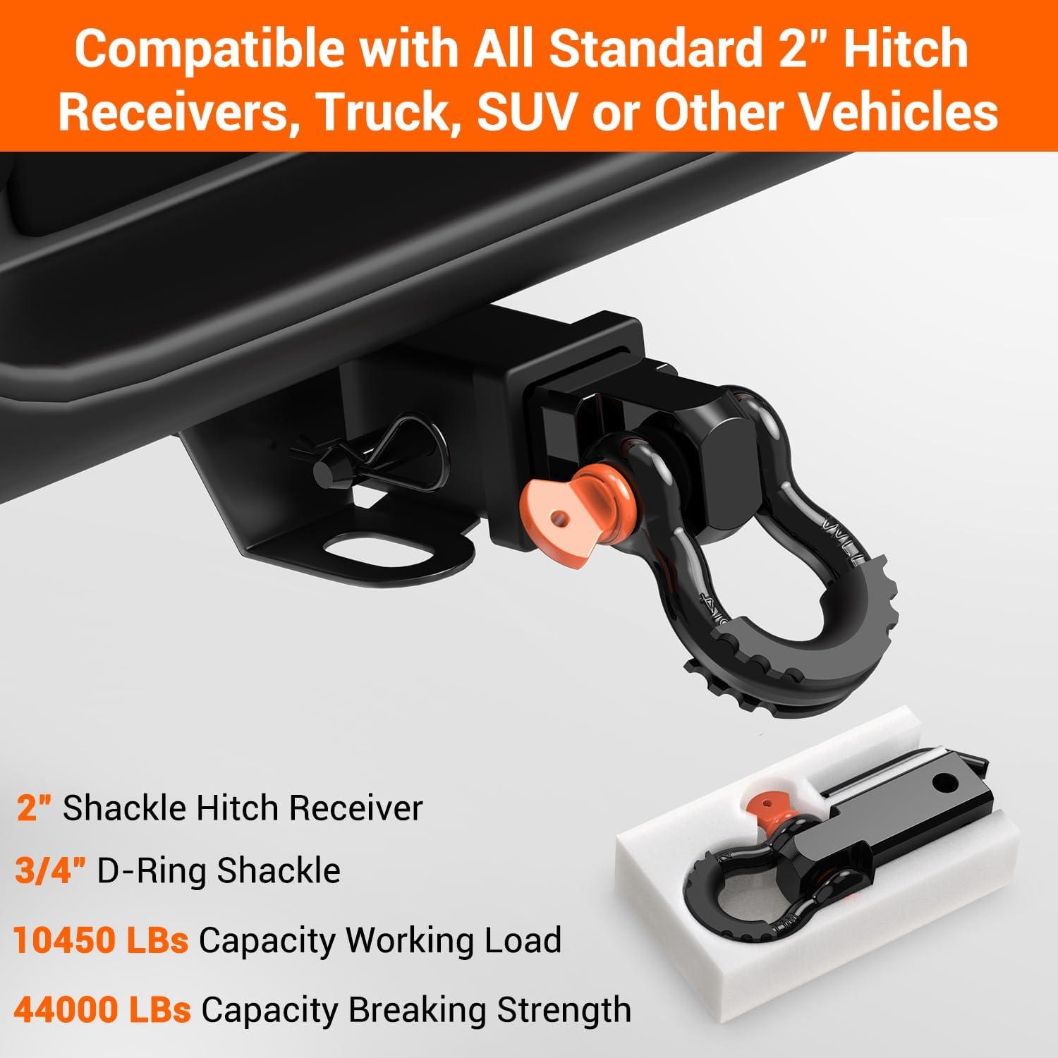 Ohuhu Shackle Hitch Receiver 2″, 44,000 Lbs Break Strength Heavy Duty Receiver with 5/8″ Trailer Hitch Lock Pin and 3/4″ D Ring Shackles with Isolator, Towing Accessories for Trailer Recovery Off-Road(With Isolator)
